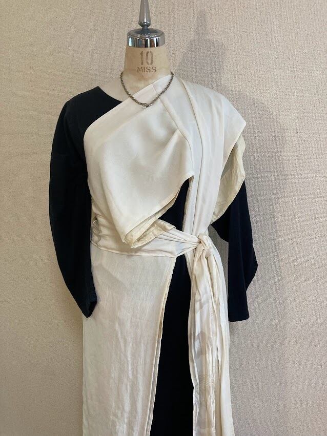 よこしま屋の和ブランドたてしま屋から 正絹着物をアップサイクルしたレイヤードワンピースの提案です。